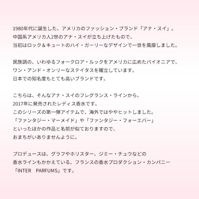こちらは、そんなアナ・スイのフレグランス・ラインから、2017年に発売されたレディス香水です。