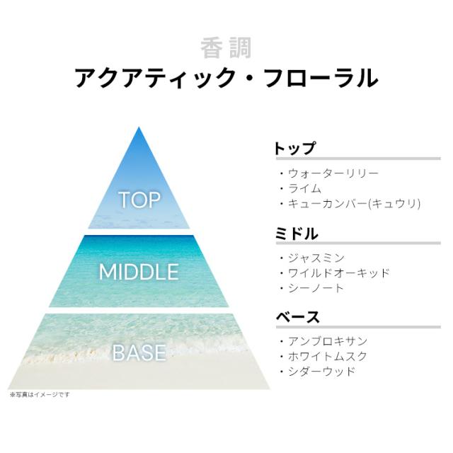ほかにも「コーラル」や「ゴールド」などいろいろありますので、興味のあるかたはチェックしてみてくださいませ。香りは、イメージ通りのアクアティック・フローラルの香調がベース。