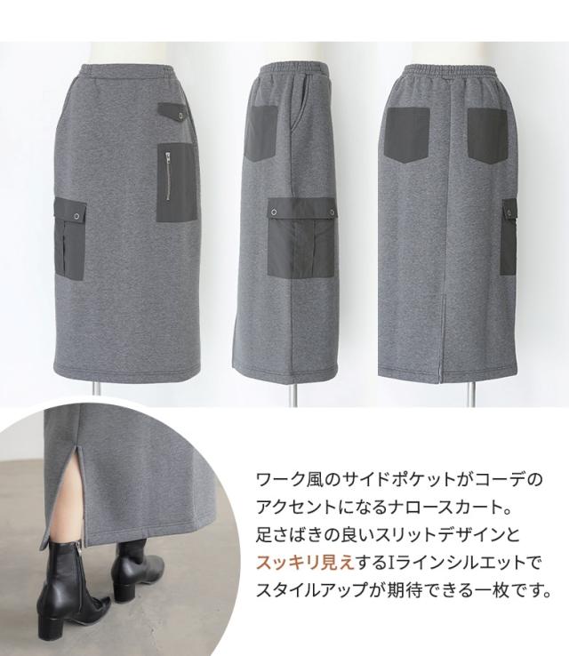 ナロースカート レディース ボトムス ロングスカート 裏起毛 あったか ストレッチ スウェットスカート ナイロン ポケット 異素材 スリット Iライン 【TP】 スウェット スエット スカート マキシスカート タイトスカート n'OrLABEL ノア—ルレーベル 大人女子 大人可愛い お洒落可愛い 大人カジュアル ベーシック ニュアンス ラフ オフィスカジュアル ロング丈 マキシ丈 ウエストゴム 配色 無地 サイドポケット おうちで洗える 伸縮性 防寒 秋 冬 ミリタリー カジュアル シンプル ナチュラル モード キレカジ フェミニン 上品 きれいめ Sサイズ Mサイズ Lサイズ LLサイズ 3Lサイズ XLサイズ ぽっちゃり 体型カバー 大きいサイズ プラスサイズ 10代 20代 30代 40代 50代 60代 女子会 オフィス 通勤 通学 お買い物 お出掛け 旅行 リゾート レジャー アウトドア キャンプ おしゃれ お洒落 トレンド 流行 osharewalker オシャレウォーカー おしゃれうぉーかー グレー 灰色 杢チャコール チャコールグレー チャコール ブラック 黒[ID]14bm0p0[n'OrLABEL裏起毛ナイロンポケットスカート]