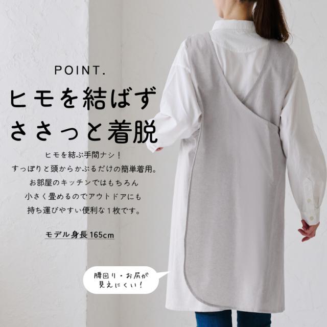 ヒモを結ぶ手間ナシ!すっぽりと頭からかぶるだけの簡単着用。