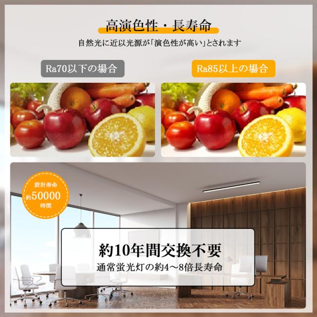 - 演色性が高いほどのシーリングライト、自然光に近いとされているので、文字がはっきりと見やすく、花の色や料理の色や人の肌色美しく自然に見えます。廊下、和室、寝室、洗面所、居間、書斎、トイレ、天井照明、キッチン照明が最適です。