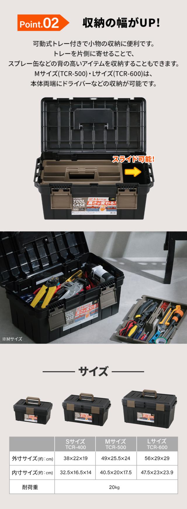 工具箱 ツールボックス プラスチック 大型 工具 ボックス 道具箱 工具入れ 持ち運び 収納 トレー 高さ 調節 ハンドル トレイ アイリスオーヤマ L(600)サイズ TCR-600 *