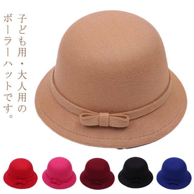 ボーラーハット お揃い ぼうし 大人用 キッズ レディース メンズ とんがり かわいい リボン 帽子 おしゃれ カジュアル フォーマル フェルトハット 無地 シンプル ボーラーハット 親子ペアルック 女の子 男の子 女性 男性