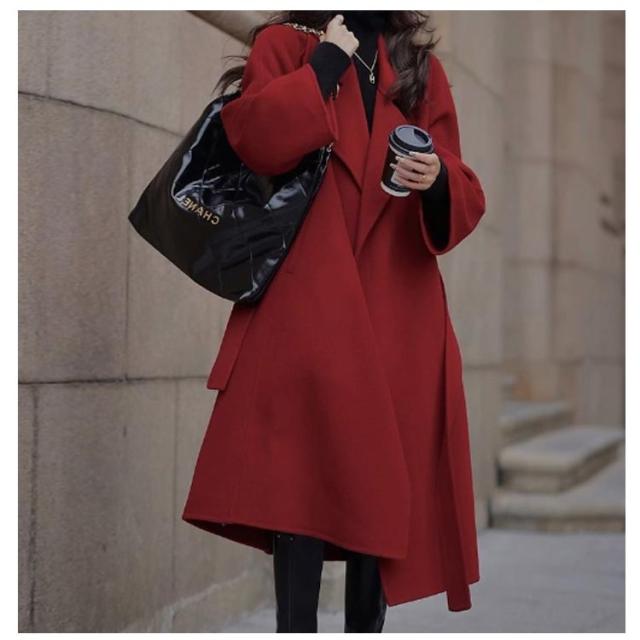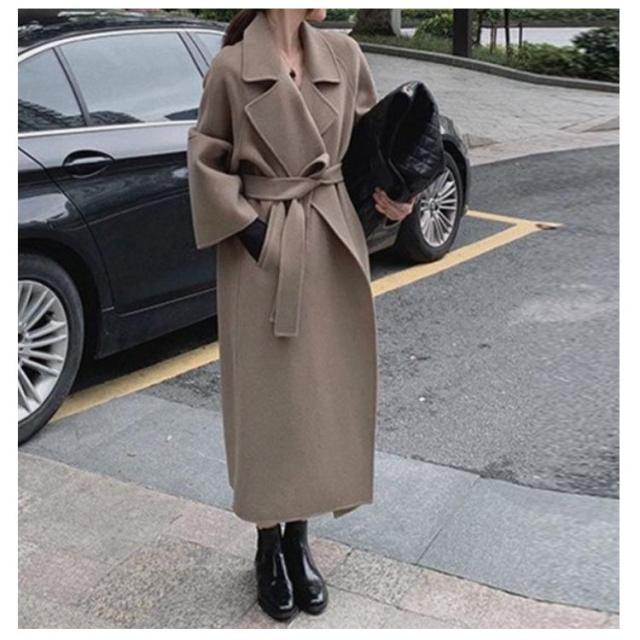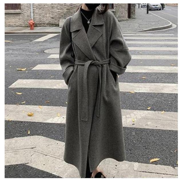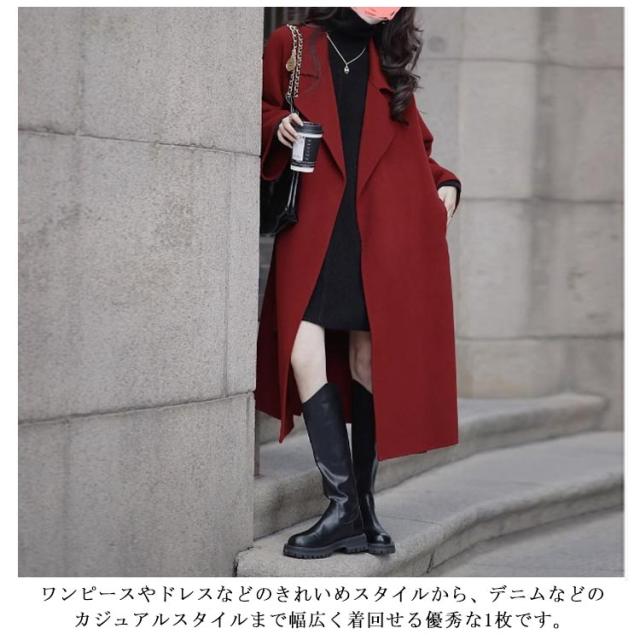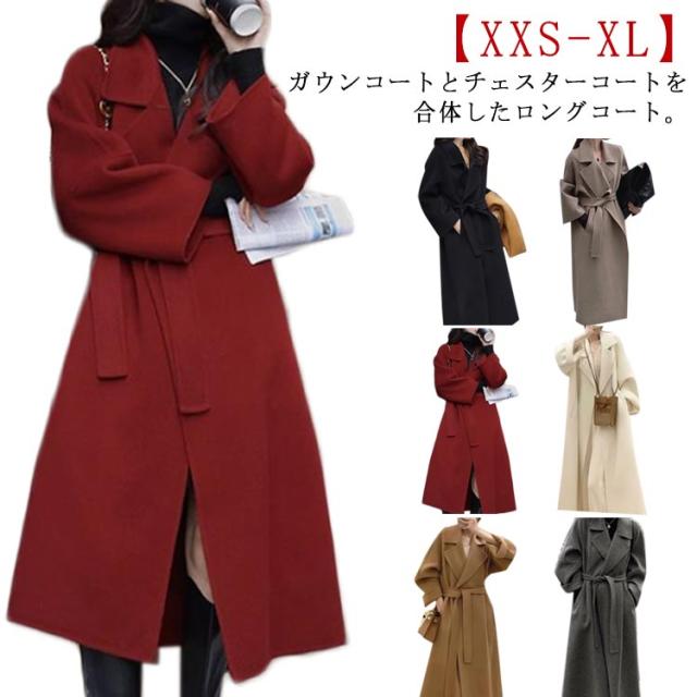 ウールライク ロング丈 テーラードカラー ラップコート 秋冬 ガウンコート 大人可愛い コート ガウンコート チェスターコート ウエストベルト ロングコート オーバーサイズ ポケット付き 膝下丈 エレガント きれいめ 厚手 おしゃれ 20代 30代 40代 50代