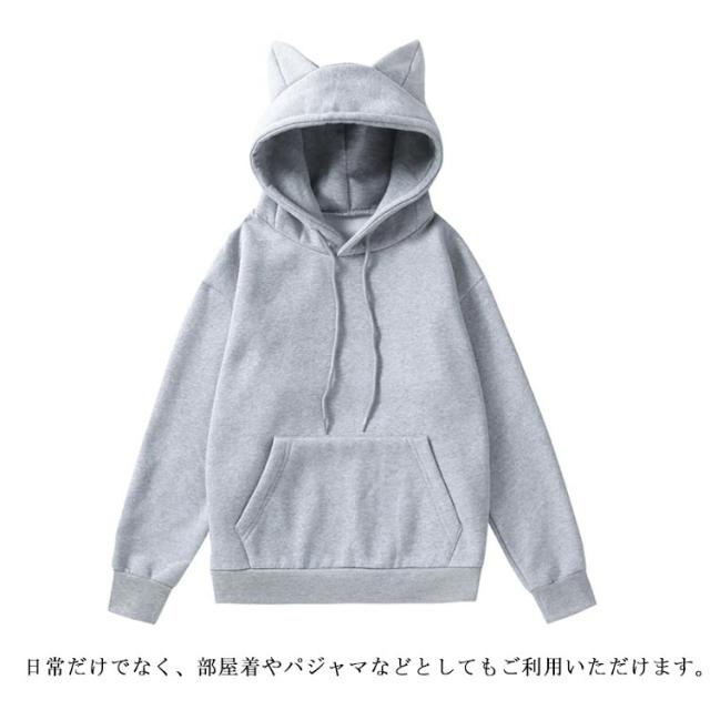 フード付き 可愛い レディース 猫耳 トレーナー 中学生 トップス 裏起毛 パーカー ネコ耳パーカー ポケット付き 春 秋 冬