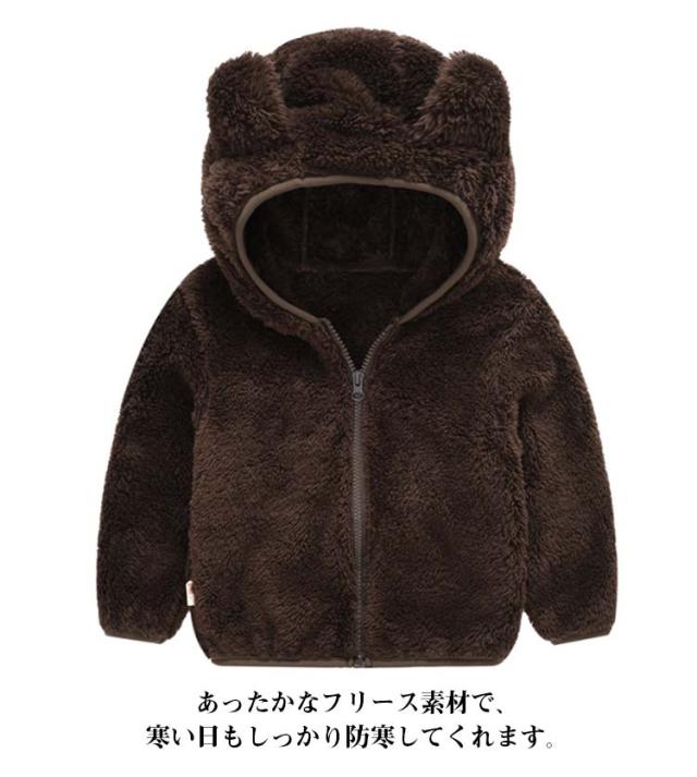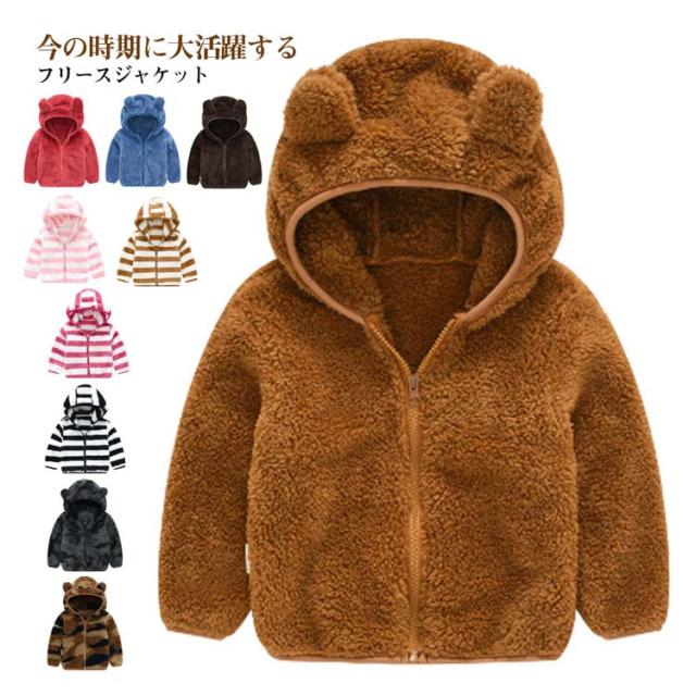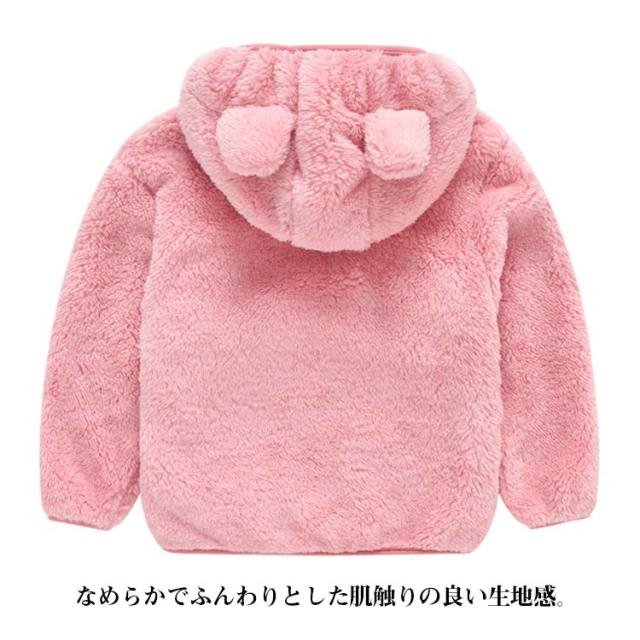 ボアフリース フリースジャケット アウター 耳付き ボアジャケット おしゃれ もこもこ キッズ服 男の子 フード付き ベビー服 通学 両面起毛 軽い ボアジャケット 防寒 あったか 子供服 アウトドア ふわふわ ジップアップ 部屋着 通園 かわいい 秋冬 冬服 無地 ギフト
