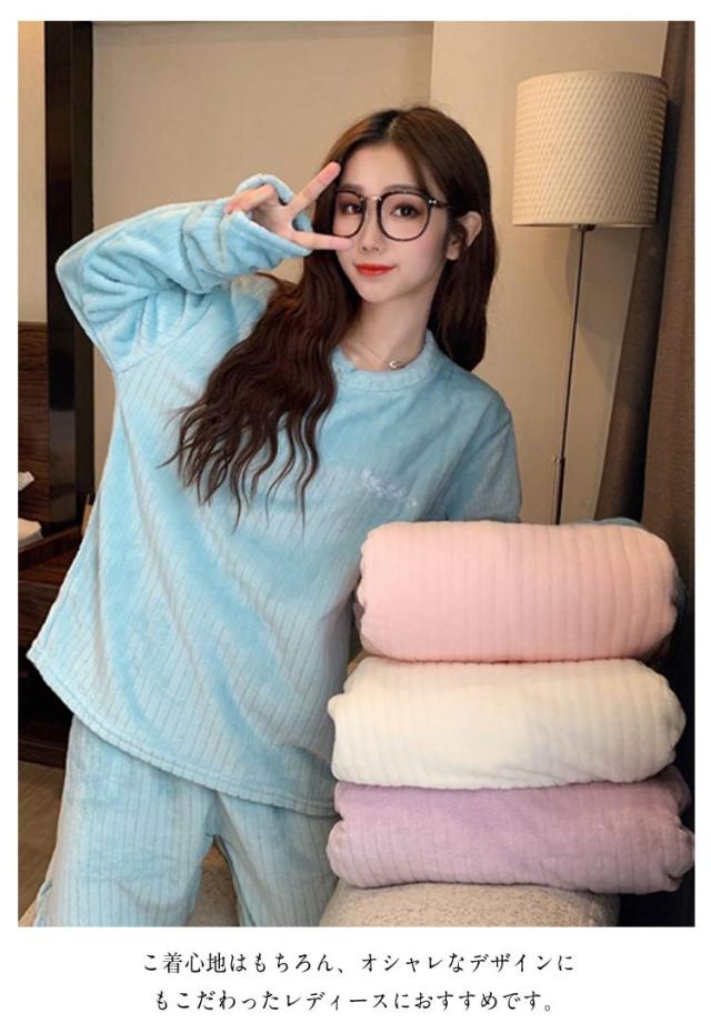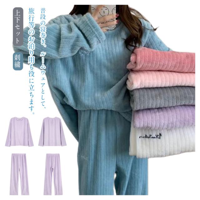 パジャマ 長袖 パジャマ 上下セット 刺繍 秋 冬 もこもこ 部屋着 リラックス あったか 厚手 寝間着 レディース 可愛い 長ズボン