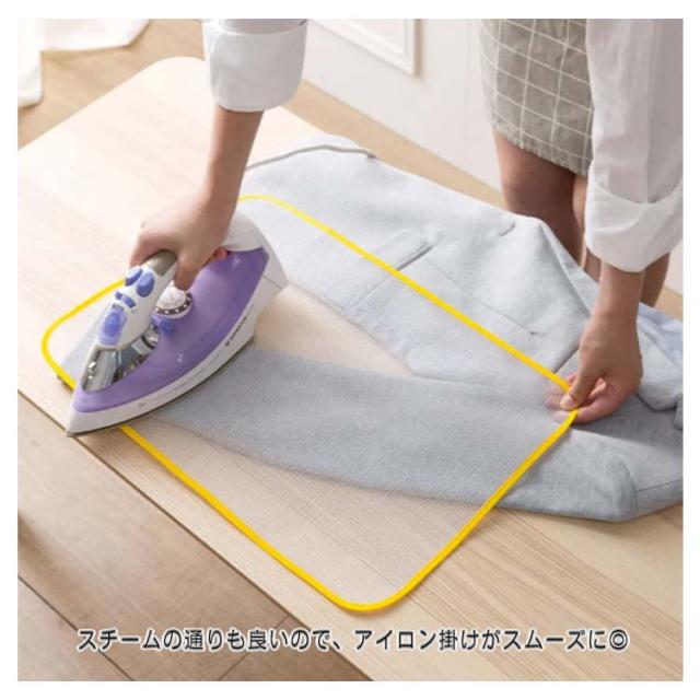| メッシュ素材のアイロン用あて布 衣類のアイロンがけに使える当て布です。 スチームの通りも良いので、アイロン掛けがスムーズに◎ メッシュ素材で折りたたんでコンパクト収納可能♪ | |