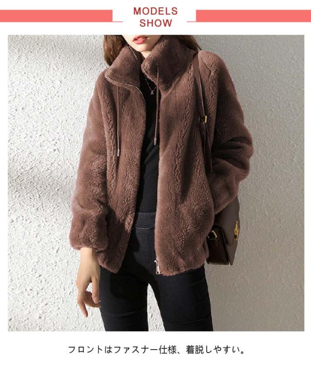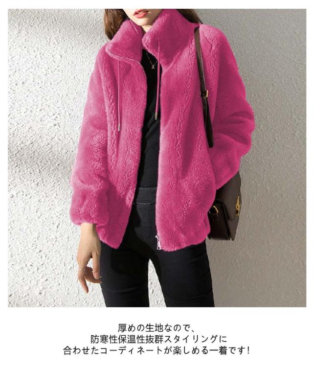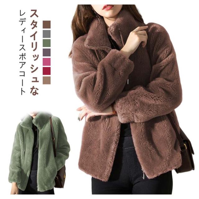 アウター ボアコート レディース ボアコート フェイクファーコート スタンドカラー 冬 大きいサイズ 暖かい 秋冬 フェイクファー 厚手 あったか モコモコ 韓国風 大人 女性 ギフト もこもこ ふわふわ 体型カバー 防寒着 通勤 ボアコート ジップアップ