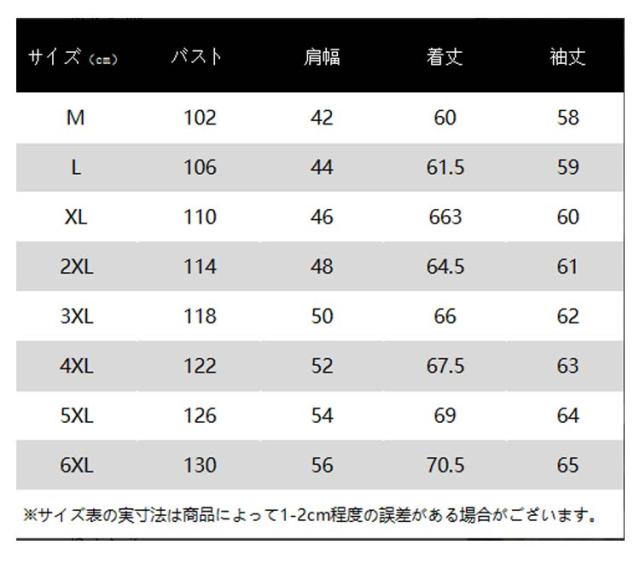 | サイズ | M L XL 2XL 3XL 4XL 5XL 6XL |