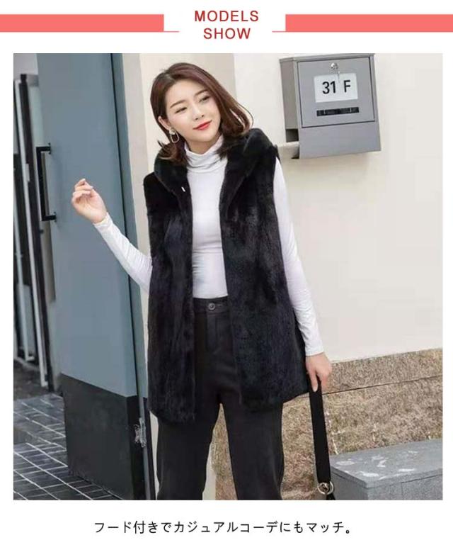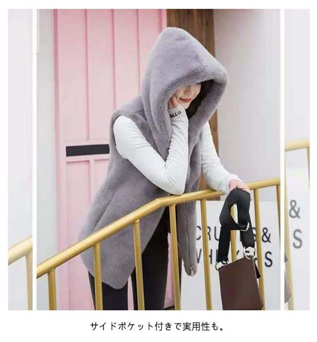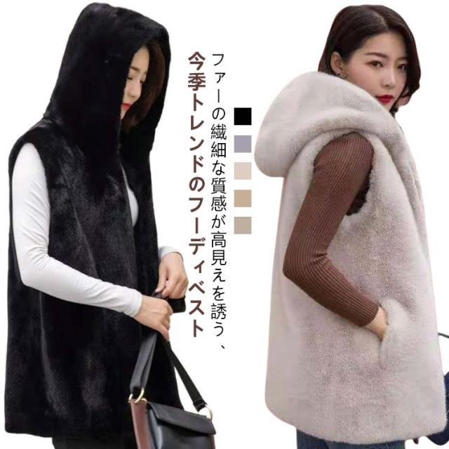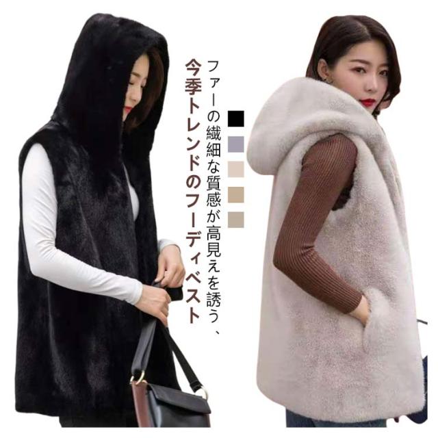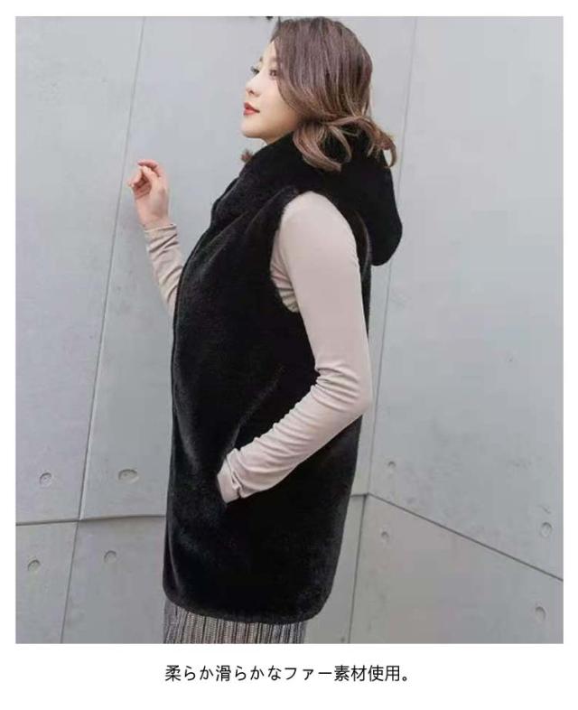 ベスト ロング ファーベスト フード付き レディース ファーベスト フェイクファー カジュアル ファー コーデ はおり エコファー 秋冬 ふわふわ もこもこ 暖かい ベスト フーディ 重ね着 大きいサイズ 体型カバー 羽織り 前開き トップス