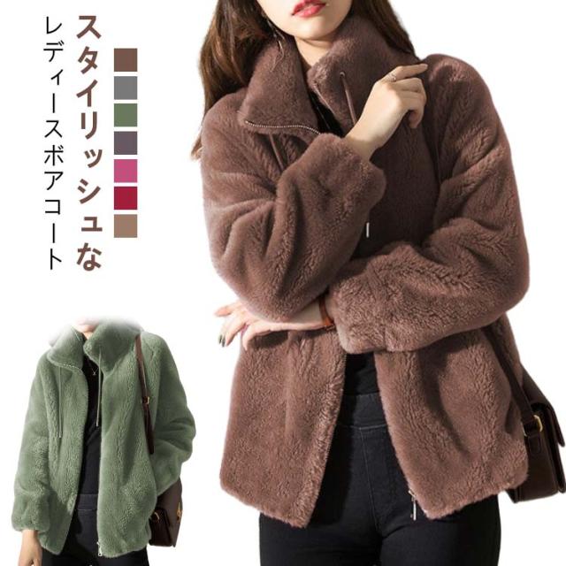 アウター 大きいサイズ スタンドカラー フェイクファーコート 体型カバー ボアコート ファージャケット ボアコート モコモコ 秋冬 厚手 冬 あったか 暖かい 韓国風 大人 女性 フェイクファー もこもこ ふわふわ ギフト 防寒着 通勤 ボアコート ジップアップ