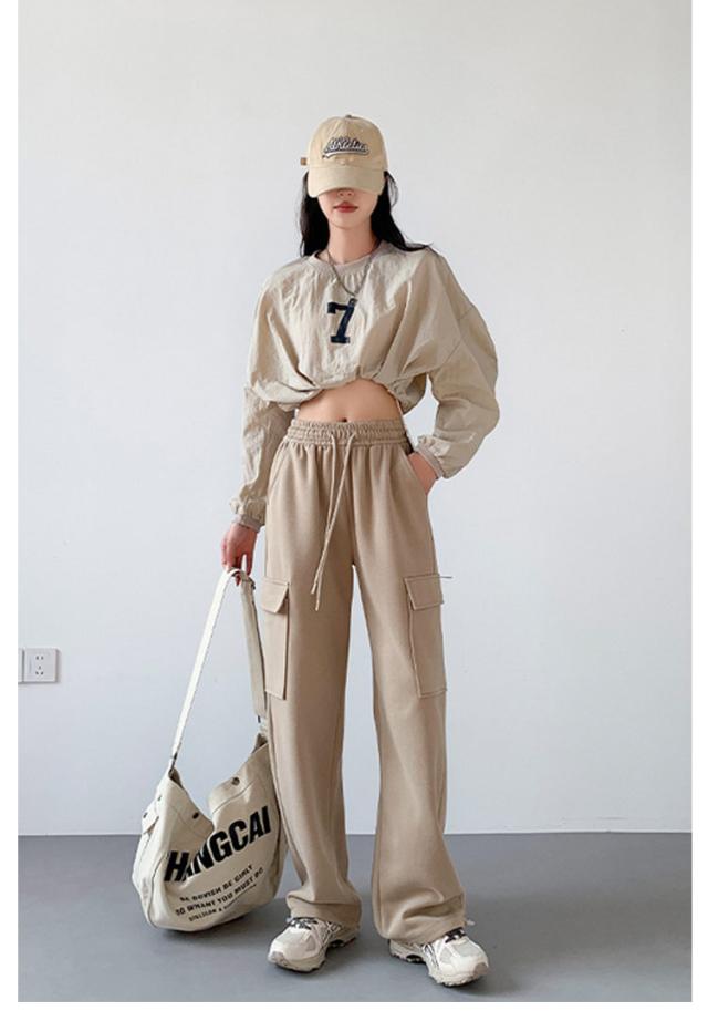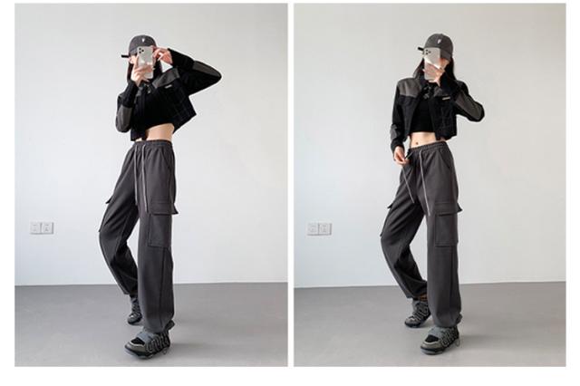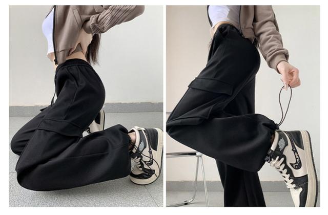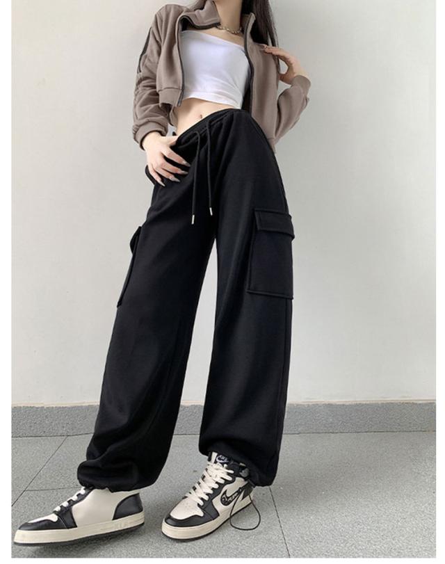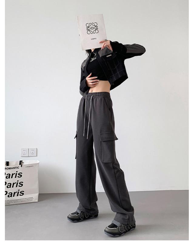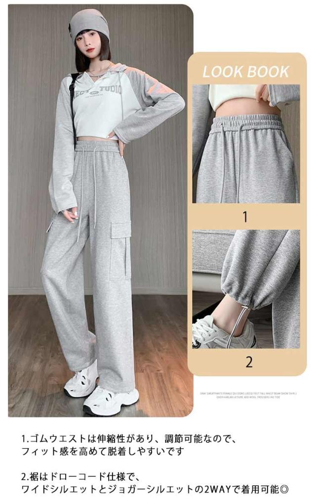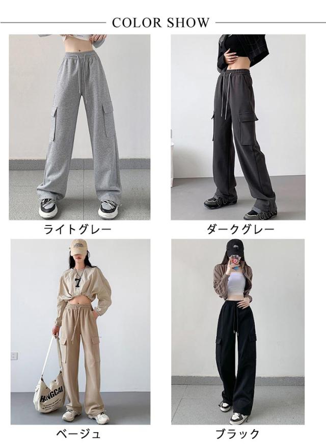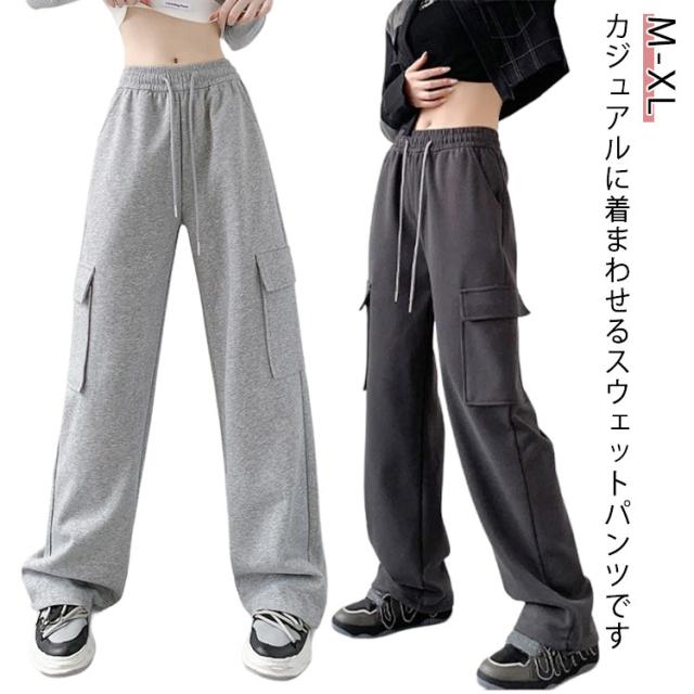 レディース 無地 ストレート スウェット シンプル ヒップホップ ハイウエスト 長ズボン カーゴパンツ 調整紐 長ズボン 作業着風 ワークパンツ オーバーサイズ ゆったり お洒落 動きやすい ウエストゴム 春秋