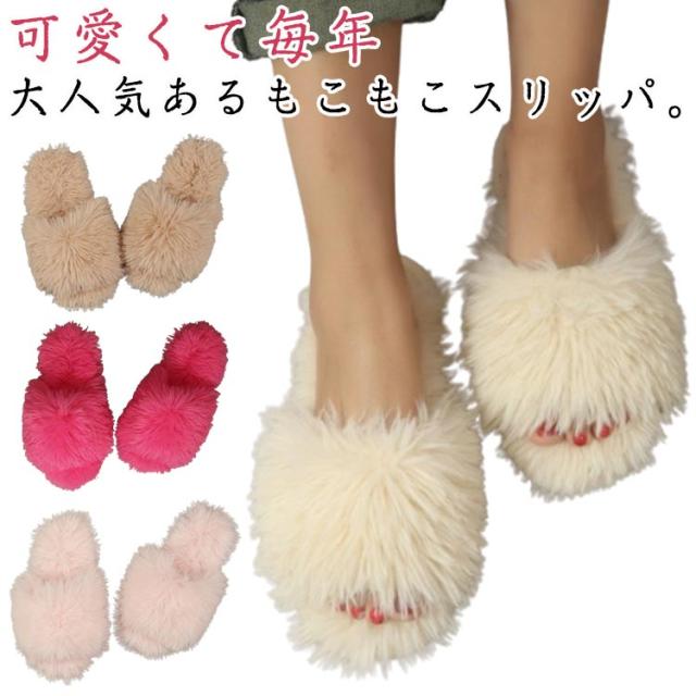 ファーサンダル 室内 もこもこ ルームシューズ レディース スリッパ 室内履き ふわふわ ファーシューズ ファースリッパ 無地 フェイクファー 軽量 滑りにくい 自宅 プレゼント 女性用 送料無料