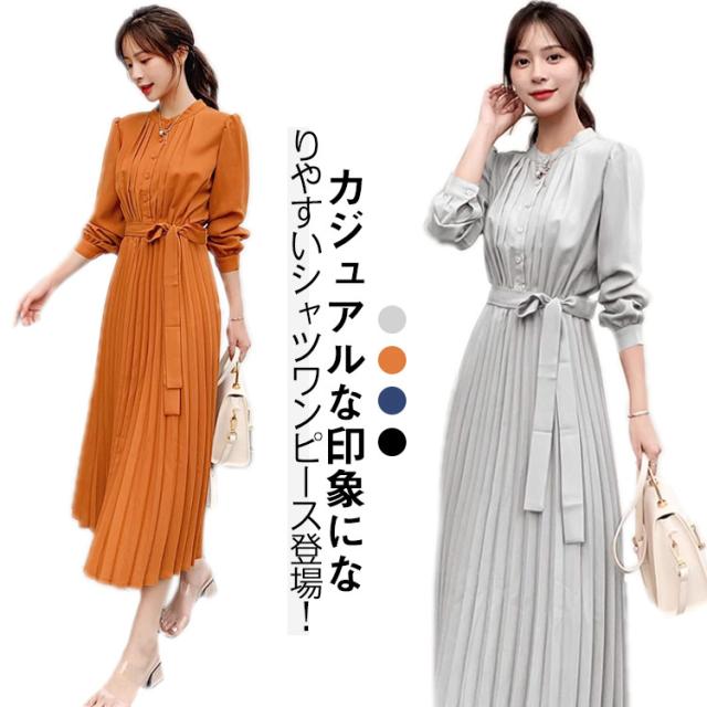 ワンピース秋 長袖ワンピ ワンピース ワンピース レディース 秋ワンピース 秋プリーツワンピース 春ワンピース シャツワンピース きれいめワンピース 大人ワンピース ロングワンピース シフォンワンピース 大きいサイズ Aラインワンピース