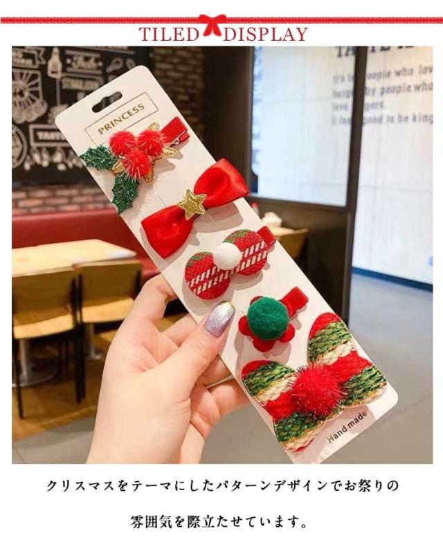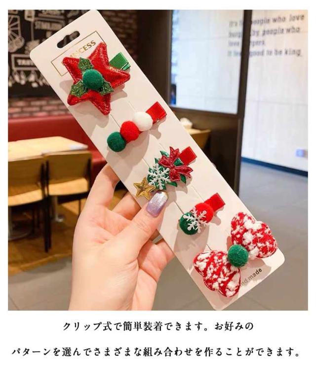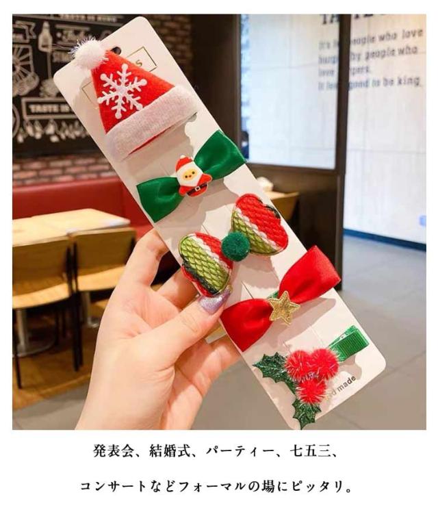 | 5点セット クリスマスヘアグリップ クリスマスをテーマにしたパターンデザインでお祭りの雰囲気を際立たせています。 クリップ式で簡単装着できます。お好みのパターンを選んでさまざまな組み合わせを作ることができます。 発表会、結婚式、パーティー、七五三、コンサートなどフォーマルの場にピッタリ。 | |