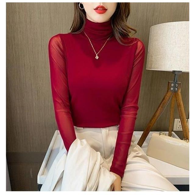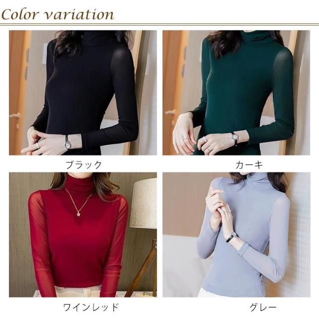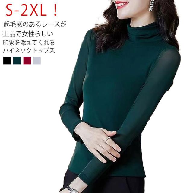 カットソー レディース 裏起毛 ブラウス 長袖 ハイネック タートルネック トップス 裏フリース インナー シースルー シャツ 立ち襟 透け感 UV対策 紫外線対策 シースルー トップス チュール 無地 フォーマル 大人 S M L XL 2XL 送料無料