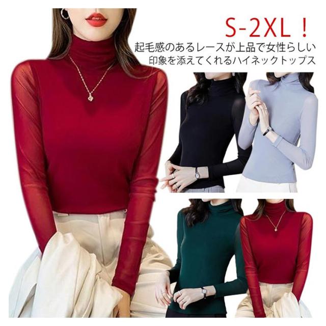 | S-2XL!起毛感のあるレースが上品で女性らしい印象を添えてくれるハイネックトップス。 裏フリース仕様でさらに暖か!ふわふわで柔らかな肌触りが心地よい。 ワンピースに重ねて首元や袖をアクセントに見せるコーディネートもおすすめです。 サラリとした素材感で着心地抜群。伸縮性があり、タイト過ぎないシルエットが◎ プチハイネックのデザインで、ニットなどとのレイヤードコーデをすると、シンプルなトップスも華やかな雰囲気に格上げします。 春夏はワンピやキャミソールのイン使い、中にキャミを着てアウトでも可愛く、秋冬はニットやトレーナーのレイヤードと、コーデによってオールシーズン着用いただけます。 | |
