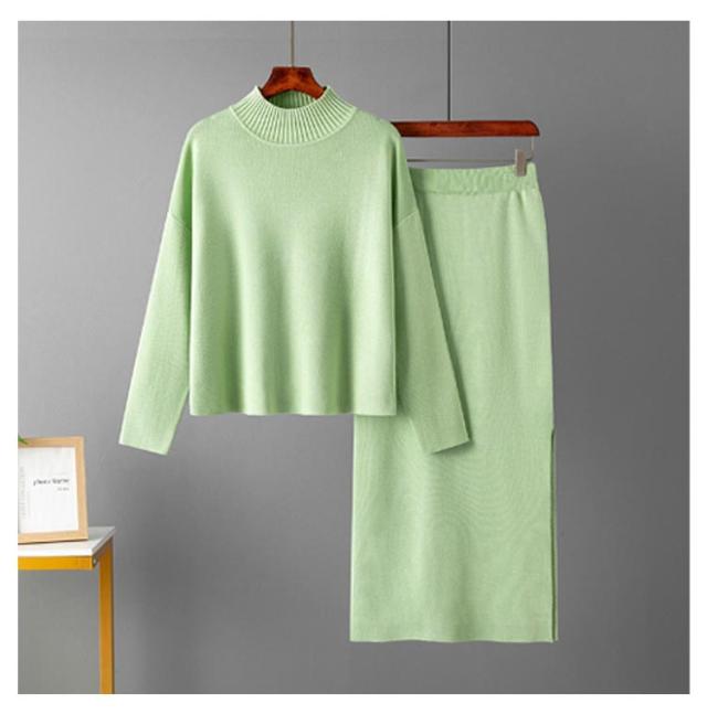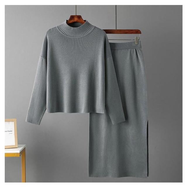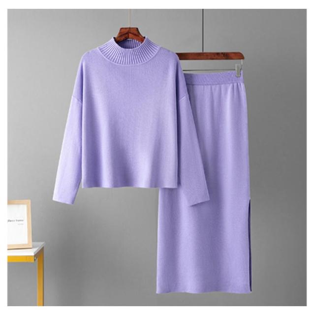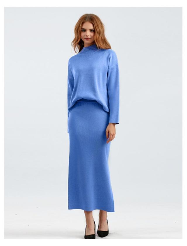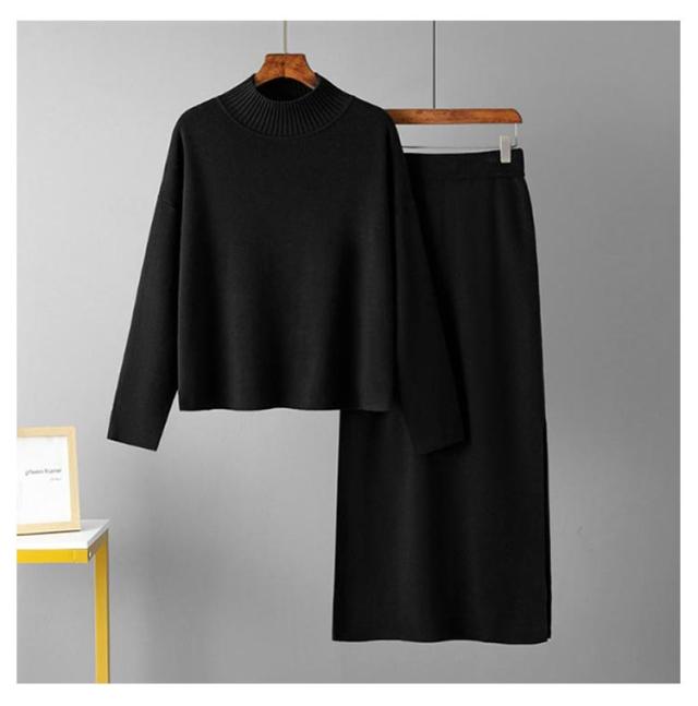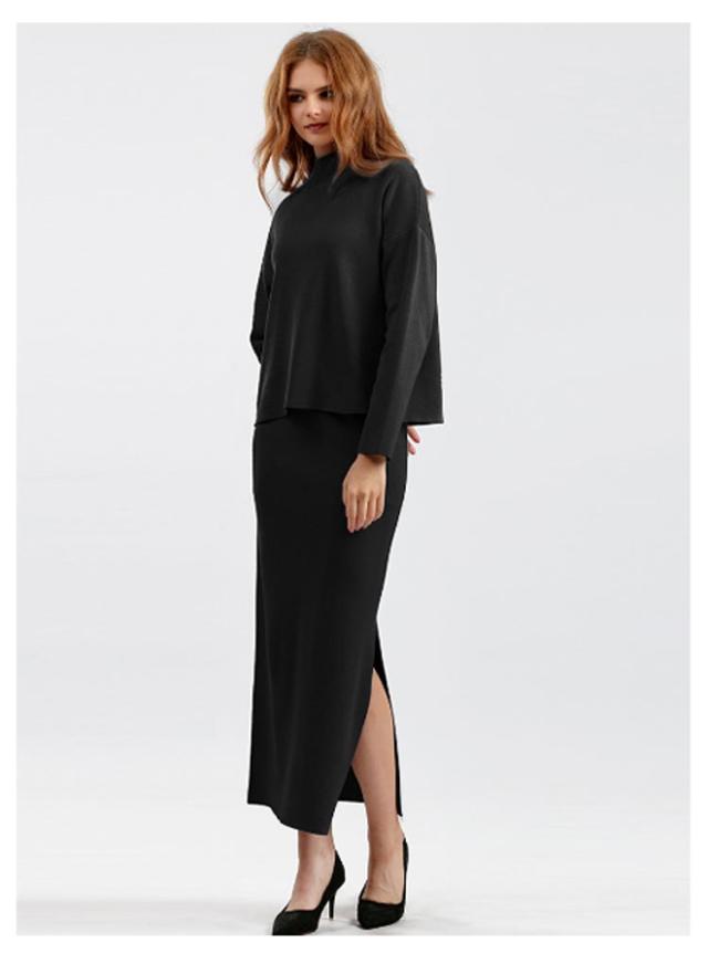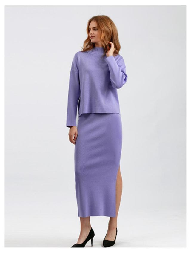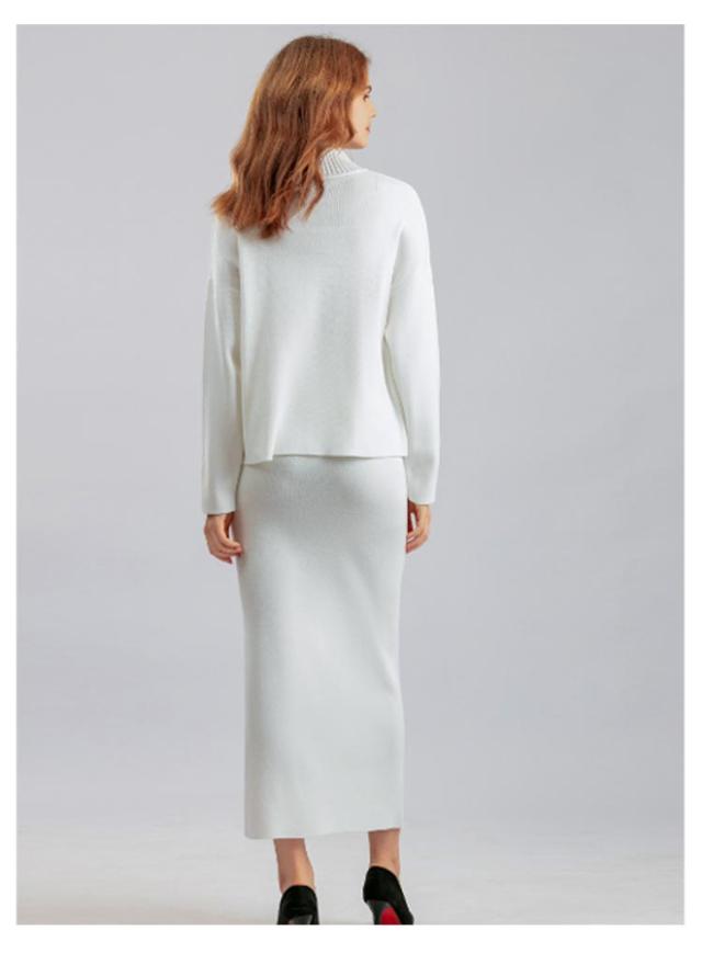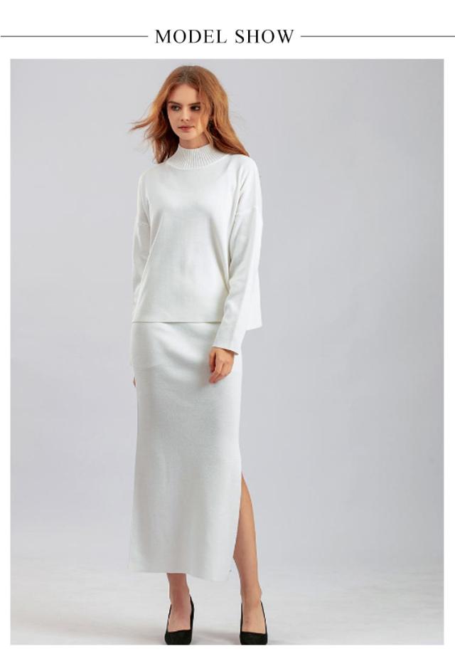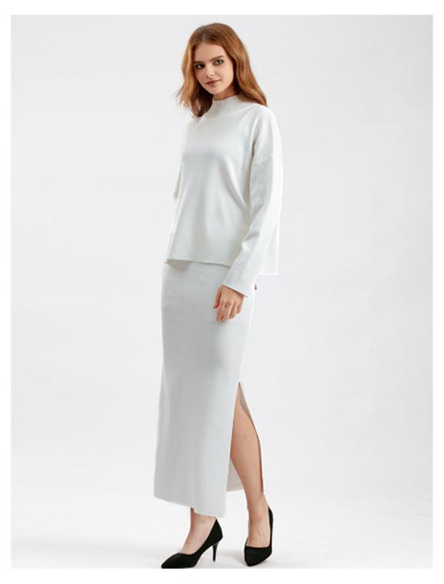 ニット ニット レディース ニットアップ スカートセット セットアップ トップス スカート プルオーバー ロングスカート スカート 長袖 ハイネック セーター ゆったり感 スリット 上下セットアップ スカートスーツ Hライン ニットスカート 無地 カジュアル 秋