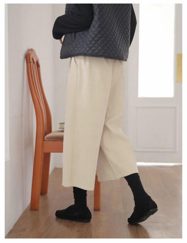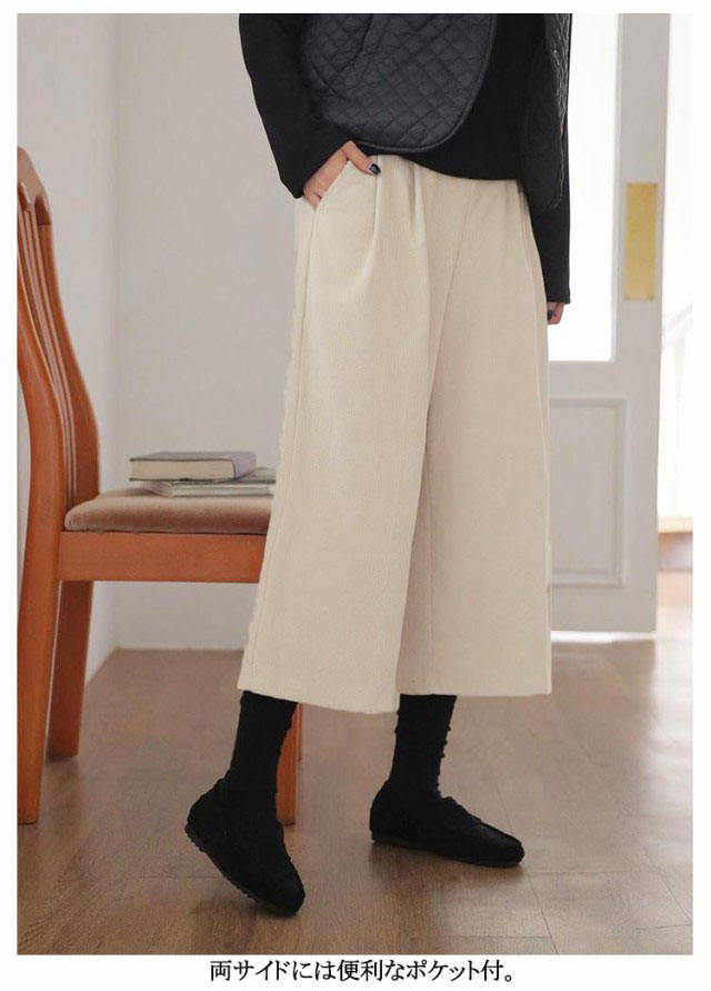 パンツ ガウチョパンツ コーデュロイ 下着 ワイドパンツ 秋冬 きれいめ ウェストゴム 七分丈 コーデュロイパンツ クロップトパンツ ポケット付き ロングパンツ シンプル 7分丈 ワイド スカーチョ オーバーサイズ あったか 大人 無地 体型カバー