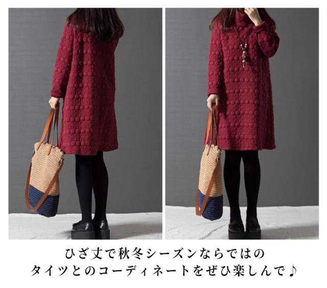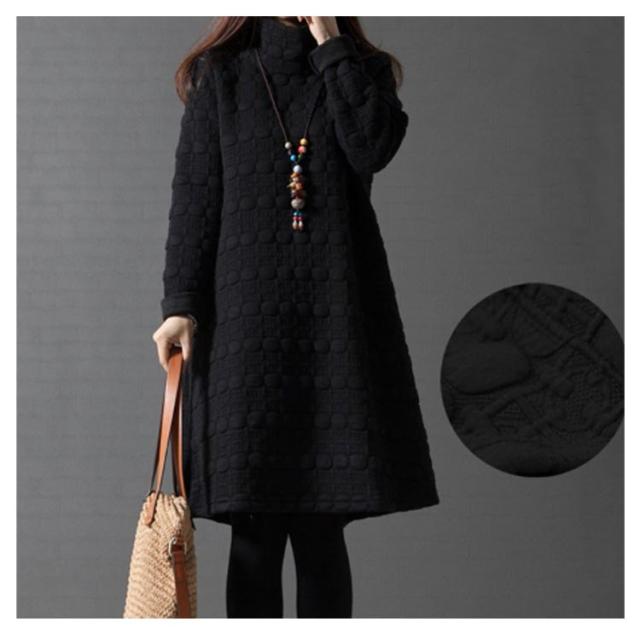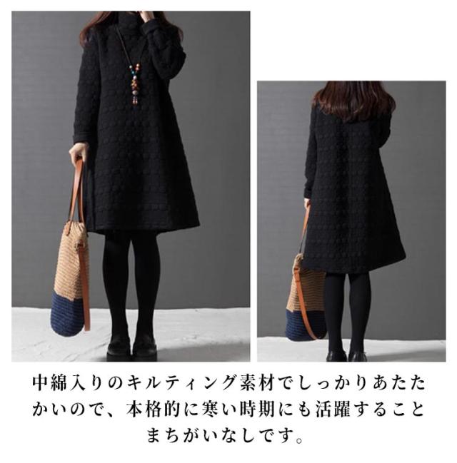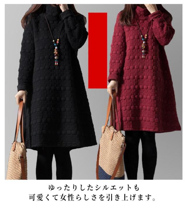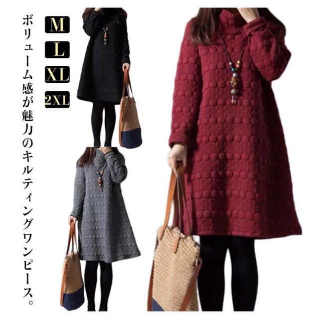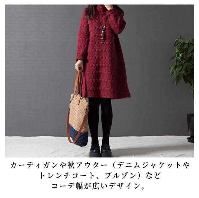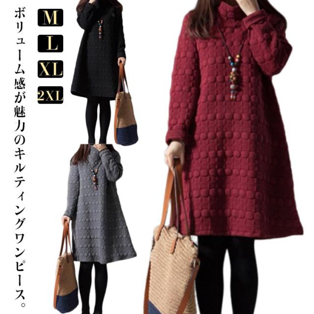 レディース 無地 秋冬 タートルネック ミディアム丈 膝丈 スウェット 長袖 チュニックワンピース ゆったり aラインワンピース ハイネック キルティング チュニック キルティング ルームウェア 大人 上品 体型カバー キルティング 20代 30代 40代