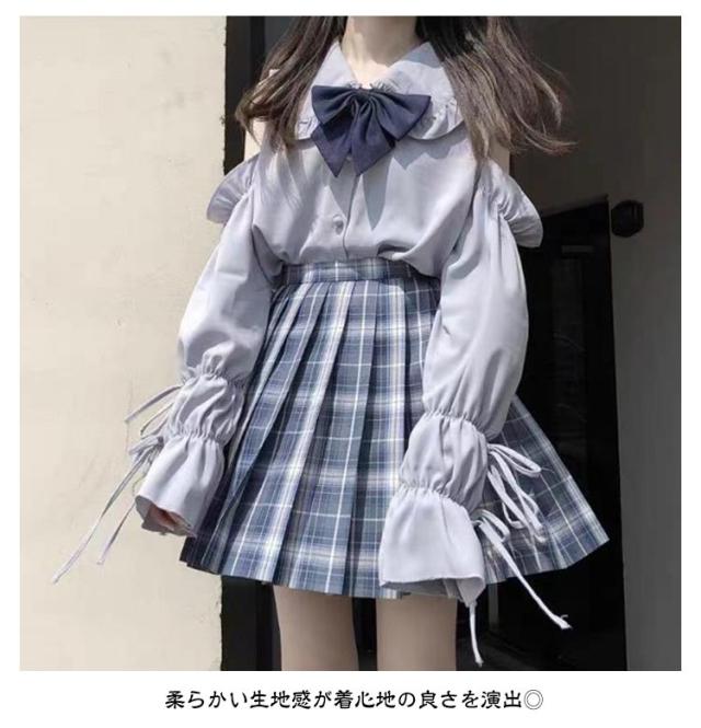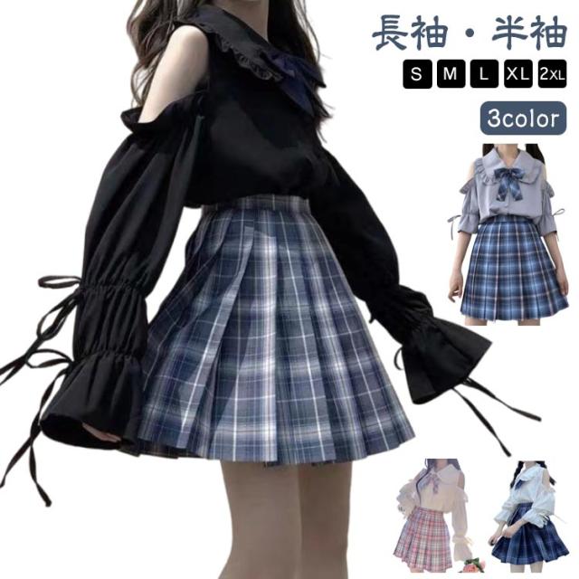長袖 半袖 肩出し シャツブラウス ロリータ 制服 スクールシャツ 学生服 かわいい 女子高校生 コスプレ 可愛い 春夏秋 無地 トップス 量産型 服 レディース ゴスロリ カジュアル 肩あき 送料無料