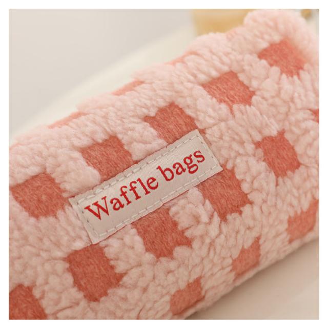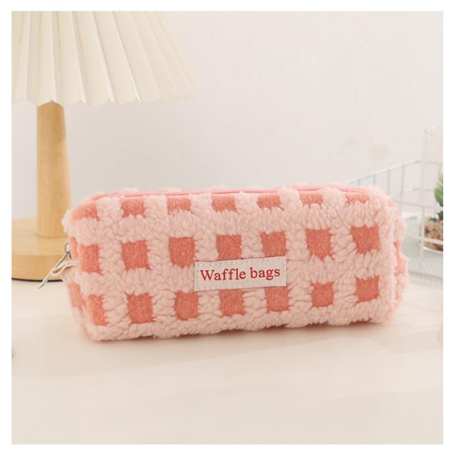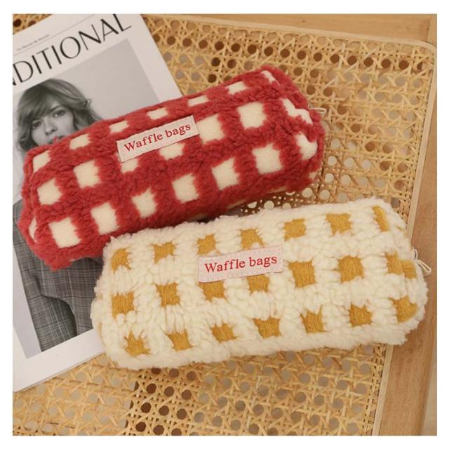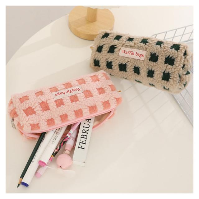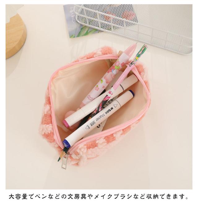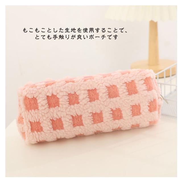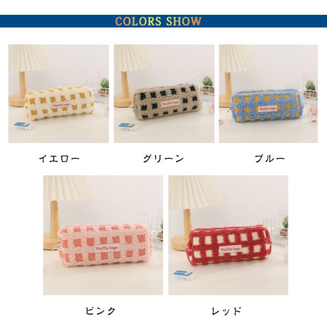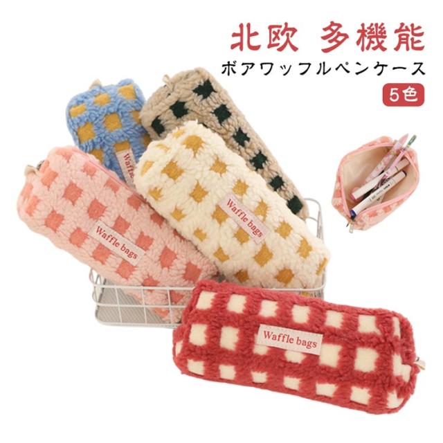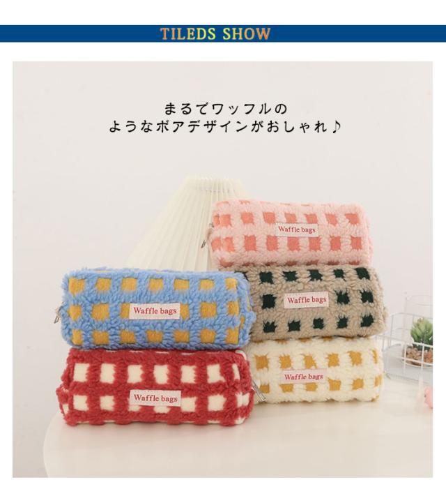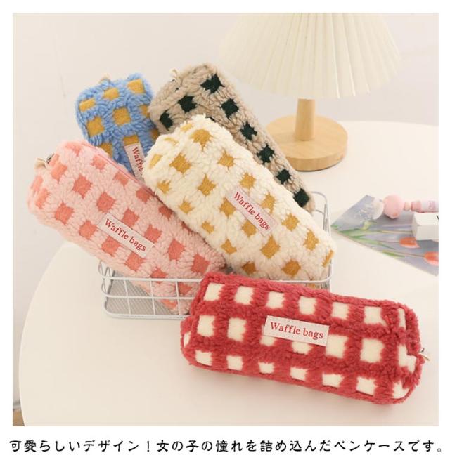 可愛い ボアワッフルペンケース 韓国 スリムポーチ 高校生 ボアワッフルペンケース 大容量 おしゃれ 文具 中学生 筆箱 大人 中学生 女子 大学生 チェック柄 ブラシケース ボアペンケース 小物 ギフト プレゼント 新学期 入学 進学祝い ふで箱 筆入れ 北欧