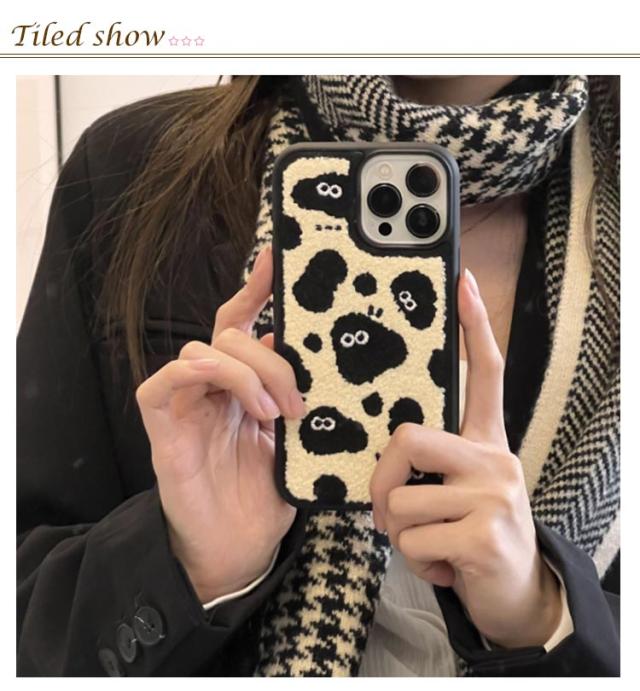 韓国 ケース スマホケース iPhone おしゃれ ケース ケース iphone16pro 13 iPhone14 iPhone16 ぬいぐるみ かわいい カバー iPhoneケース 牛柄 アニマル柄 iPhone16 ケース もこもこ ふわふわ 刺繍 秋冬 おしゃれ 可愛い iphoneカバー 耐衝撃