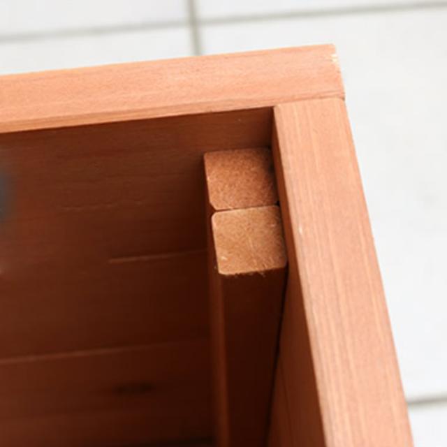 丁寧に磨き上げられた、しっかりした作りの天然木プランターです。1つ1つ異なる木目や、天然木ならではの質感豊かな風合いが楽しめます。