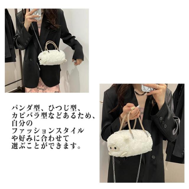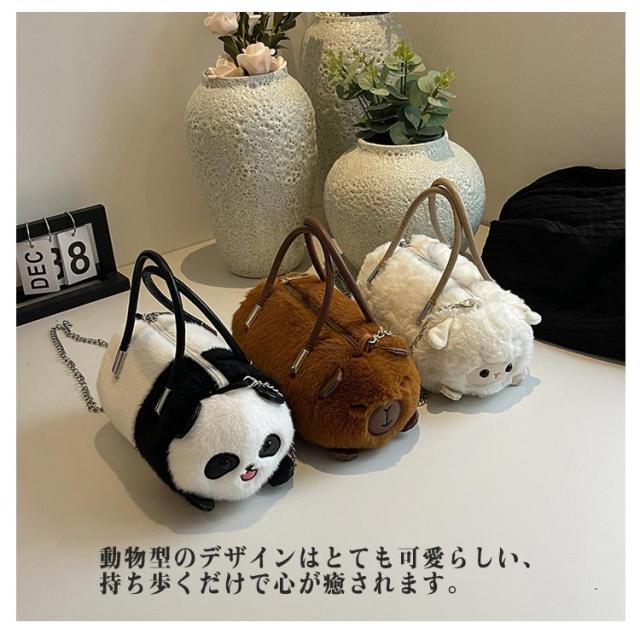 フェイクファーバッグ ポシェット パンダ型 ぬいぐるみバッグ ミニバッグ ハンドバッグ 動物型 パンダ型 スマホポーチ ふわふわ 可愛い 斜めがけ 手提げ ひつじ型 バッグ カピバラ バッグ かばん