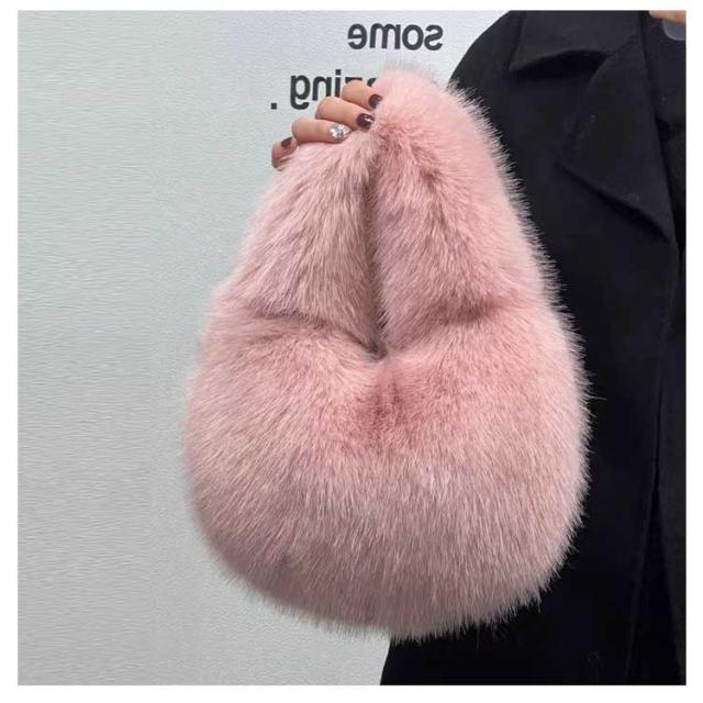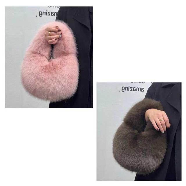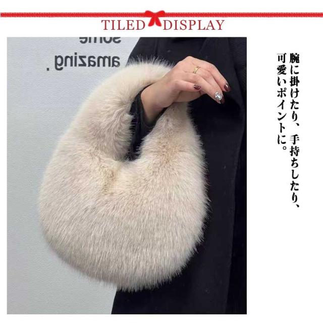| コーデの可愛いアクセントに♪ ふんわり毛足の長いハーフムーンファーバッグ。 腕に掛けたり、手持ちしたり、可愛いポイントに。 カジュアルにもフォーマルにも合わせやすいので、コーディネートに気軽に取り入れられるファーハンドバッグ。 | |