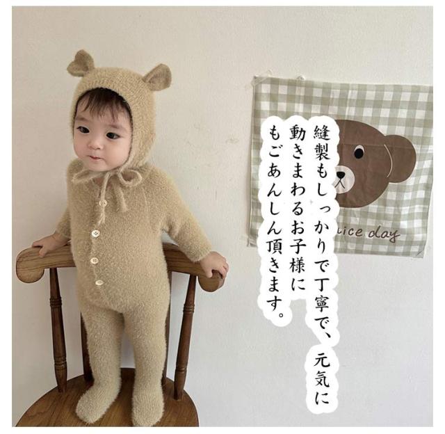 ハロウィン くまちゃん キッズ ベビー服 ロンパース 足つき もこもこ 着ぐるみ カバーオール くま耳 熊耳 帽子 赤ちゃん 新生児 男の子 女の子 ベビー クリスマス コスプレ コスチューム 干支の年賀状 撮影 新生児 出産祝い