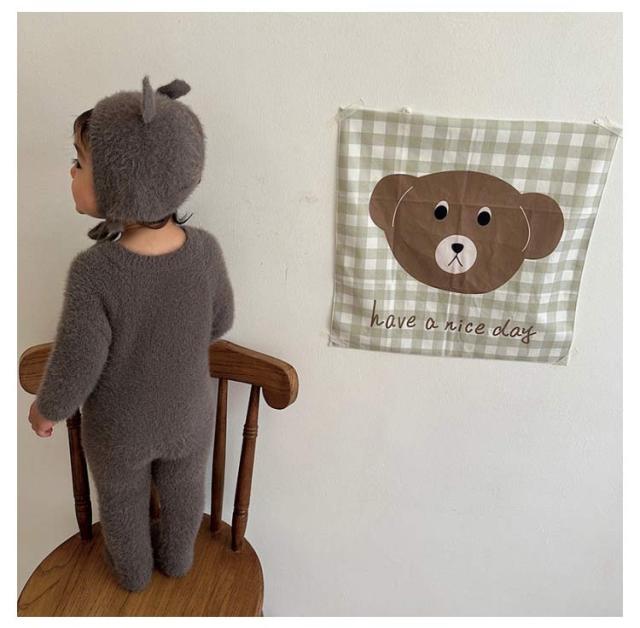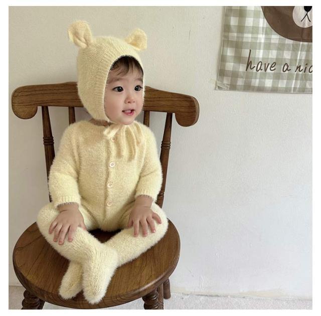 | ベビー用ロンパース!とってもキュート♪ クマ耳付きで見た目もかわいく、あごで止めれるので落とす心配もなく機能性も抜群。 ボタン開閉で着脱が楽、 全身すっぽり覆うので暖かさも逃がしにくいです! 縫製もしっかりで丁寧で、元気に動きまわるお子様にもごあんしん頂きます。 外出も部屋着としても大活躍してくれる秋冬用のロンパース。 幼稚園、保育園、通園、通学、休日のお出かけ、普段着、お家でのリラックスウエアとしてもおすすめです。 | |