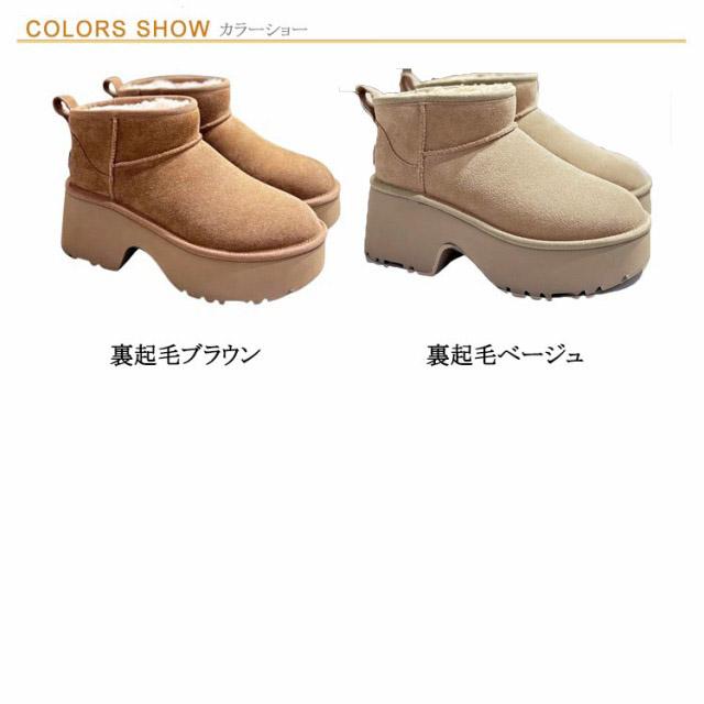 厚底 ムートンブーツ ブーツ 暖かい レディース 厚底ムートン ソール ムートンブーツ 防寒 厚底 ショート レディース 撥水 雪 雨 ブラウン チャンキーヒール5cm 厚底ブーツ 旅行 レディース レジャー ムートンブーツ ボア ファー ショートブーツ あたたかい 靴 スエード