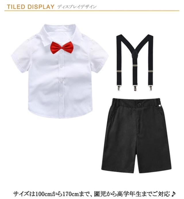 100cm-180cm 半袖 スーツ サスペンダー キッズ フォーマル 男の子 フォーマル 卒業式 男の子 ショートパンツ 4点セット キッズ ジュニア 子供服 ハーフパンツ ウエストゴム 入学式 卒園式 夏 お受験 発表会 結婚式 フォーマルスーツ こども パンツ ズボン