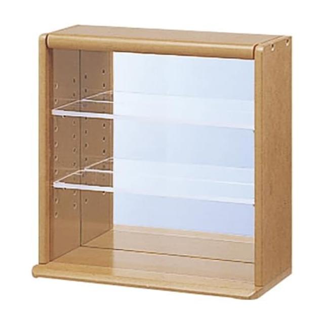 ■透明アクリル棚板を採用した木製コレクションケースです。