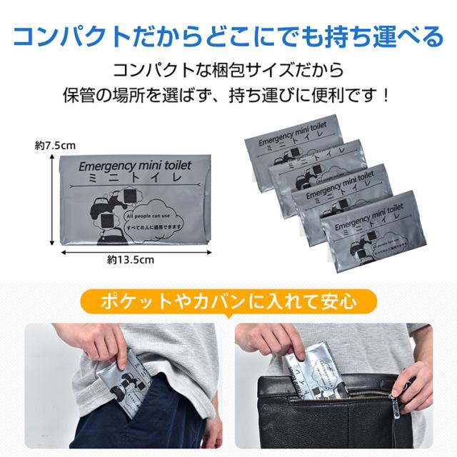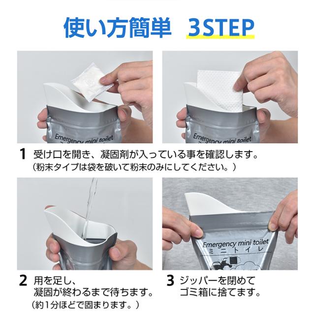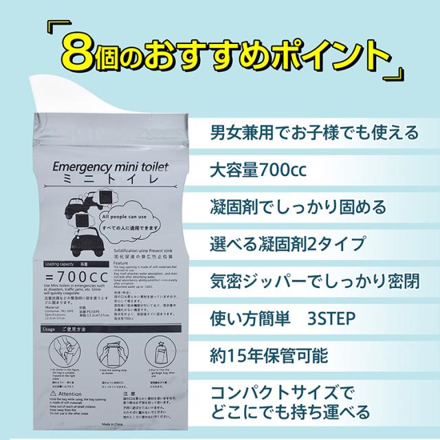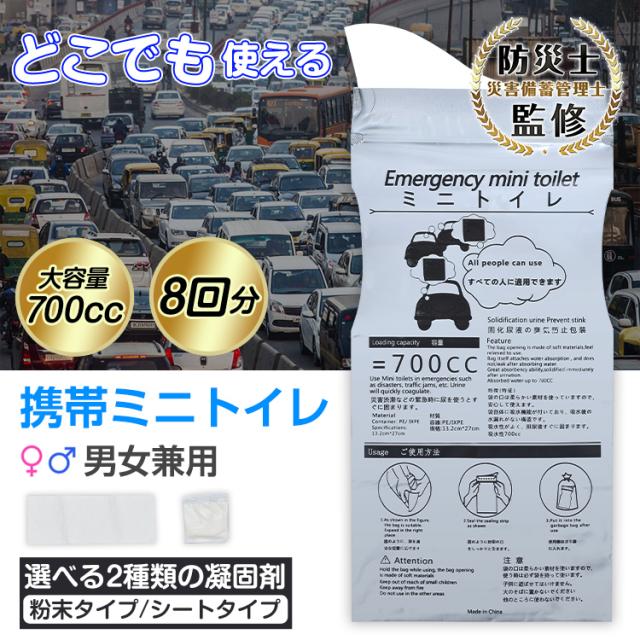 携帯ミニトイレ 8個セット 粉末タイプ シートタイプ 凝固剤 防災グッズ 簡易トイレ 携帯トイレ 災害用 緊急用 アウトドア用 渋滞 車 男女兼用 臭い防止 使い捨て bs005