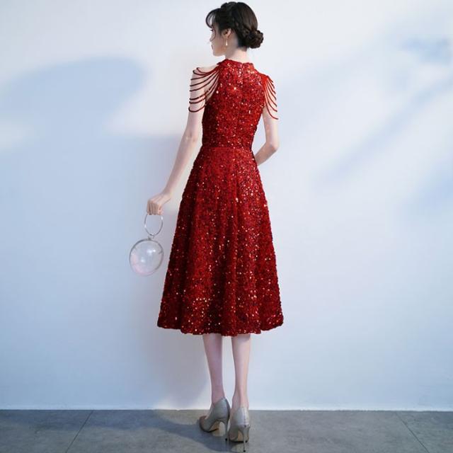 ドレス 大人 ピアノ 発表会 キラキラ ミモレ丈ドレス 演奏会 演奏会用ドレス ピアノ発表会 ミモレ丈 結婚式 高校生 パーティードレス 大きいサイズ 母親 コンクール イブニングドレス 演奏会ドレス 赤 大きい