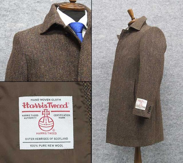 英国生地 [Harris Tweed]ハリスツイード ステンカラーコート 茶系/オートミール 秋冬物 HTC-S15
