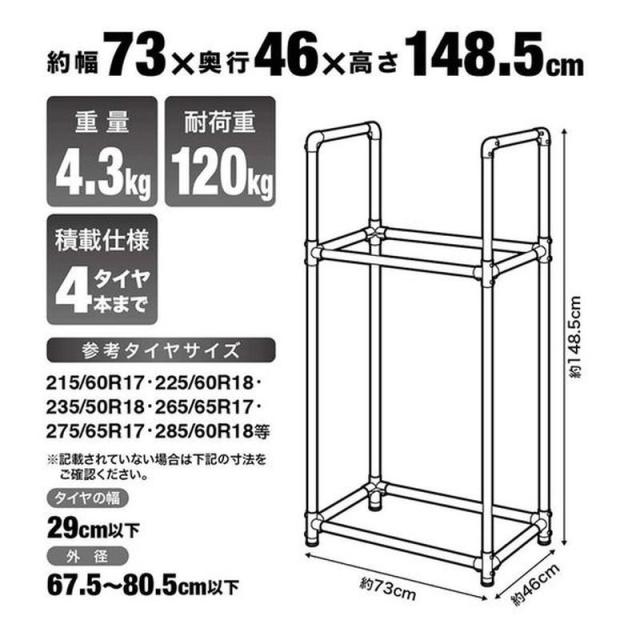 タイヤラック タイヤ収納庫 縦置き 4本用 SUV RV車用 Lサイズ 耐荷重120kg 屋外 タイヤ保管 収納棚 物置