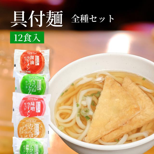 レンジで温めるだけ キンレイ 具付麺 12個入 全種セット 冷凍 冷凍麺 冷凍食品 麺 キンレイ ラーメン 冷凍ラーメン 冷凍うどん 業務用 時短 レンチン レンジ 簡単 醤油ラーメン きつねうどん 天ぷらうどん えび天 セット 冷食 だし 付き 詰め合わせ