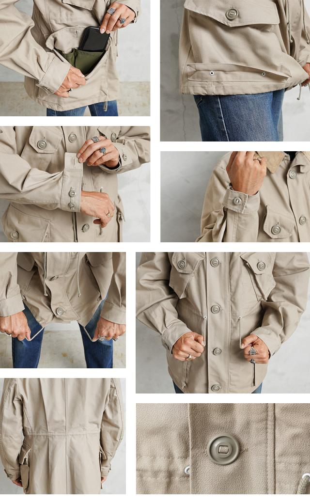 | 商品説明 | 実物 新品 デッドストック カナダ軍 GS MK-2 カナディアン コンバット ジャケット コーデュロイカラー DESERT TANのご紹介です。 制式名称:COAT,COMBAT,GS,MK II カナダ軍で1990年代に採用されたMK-2 コンバット ジャケット DESERT TANが入荷しました。 砂漠などの乾燥した地域での着用を目的に製造されたデザートタンカラーのジャケットです。 地上兵士(GROUND SOLDIER:GS)が着用していたジャケットで、カナダ軍に多く見られるスロットボタン(パラシュートボタン)や、胸にはライフルのマガジンを収納するために傾斜がつけられたポケットが特徴で、ウエスト部分の大型フラップポケットはマチ付きで内部は仕切られており収納に便利な仕様となっています。 襟はコーデュロイの切り替えになっており、チンストラップやウエストと裾のコード、調節可能な袖先などのミリタリージャケットらしいディテールとフロントはジッパーとボタンの開閉で防寒性にも優れたジャケットです。 ファッション目線で見ても極めて完成度が高い仕上がりとなっており、コーデュロイの襟元が上品さもあり使いやすい、希少なカナディアンサープラスアイテムです。 | |||||||||||||||||||||||||||||||||||