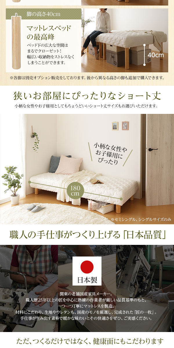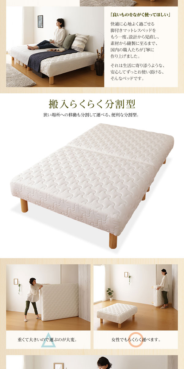 商品仕様: 脚付きマットレス 国産 分割型 ポケットコイル 通常丈 シングル 脚22cm 組立設置サービス付き