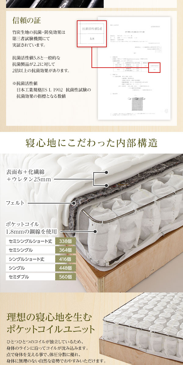 極厚キルティングとポケットコイルでふっくら気持ちいい寝心地