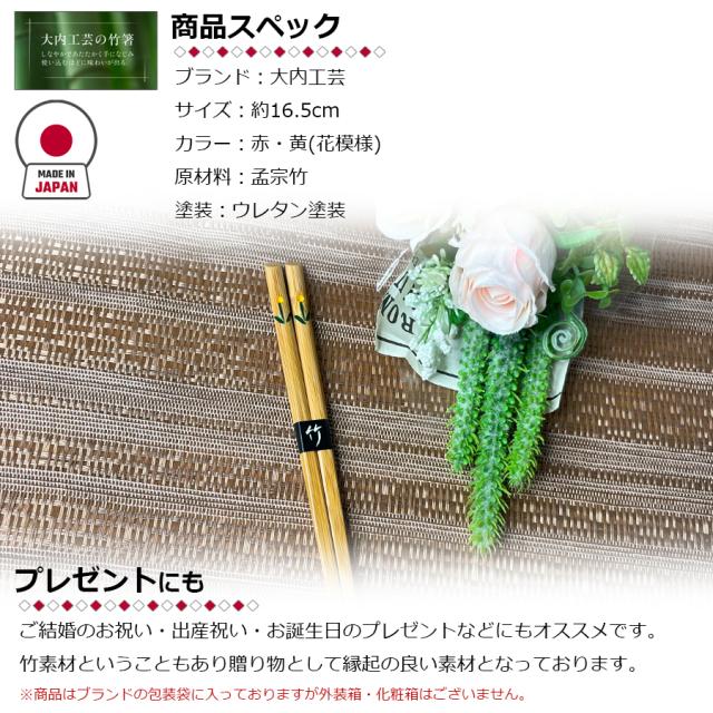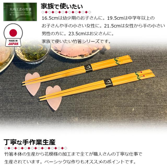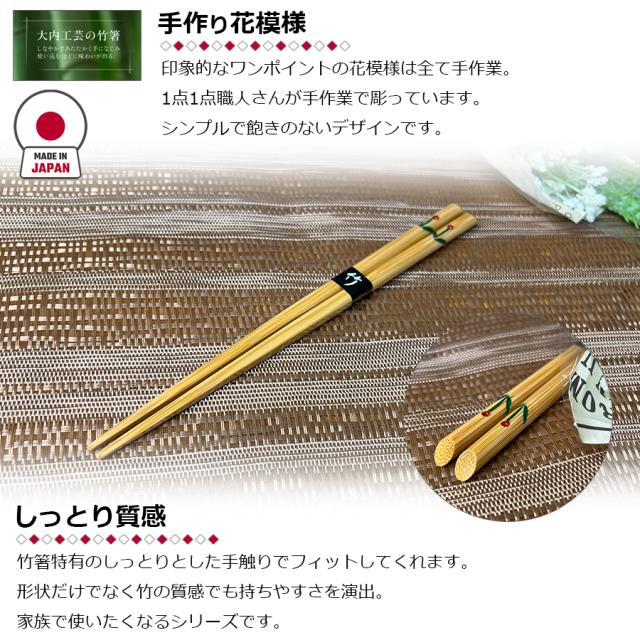大内工芸 日本製 花入箸 子供用 おはし 19.5cm 箸 竹製 竹箸 はし カトラリー 国産 職人 手造り 持ちやすい 食事 食卓 キッチン用品 台所用品 キッチンツール 食器 おしゃれ 男の子 女の子 大分県 日田市 家庭用 普段使い 国産竹 かわいい 可愛い チューリップ 区分N H122