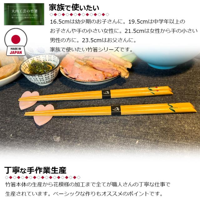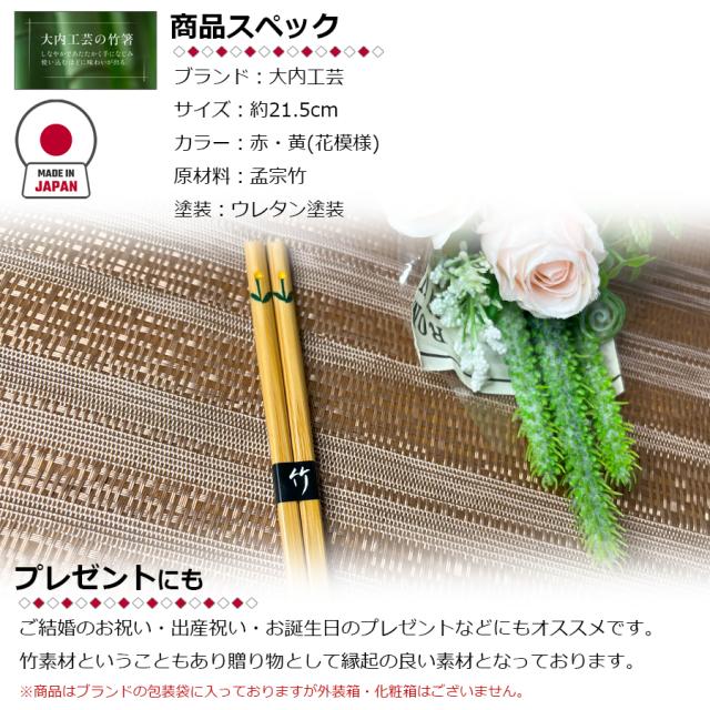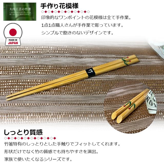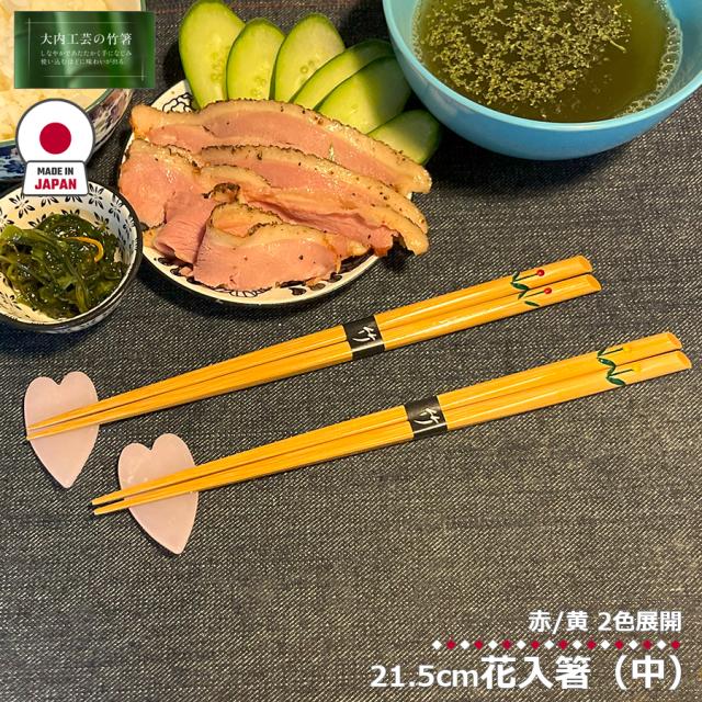 大内工芸 日本製 花入箸 大人用 おはし 21.5cm 箸 竹製 竹箸 はし カトラリー 国産 職人 手造り 持ちやすい 食事 食卓 キッチン用品 台所用品 キッチンツール 食器 おしゃれ 男性 女性 大分県 日田市 家庭用 業務用 普段使い 国産竹 かわいい 可愛い チューリップ 区分N H121