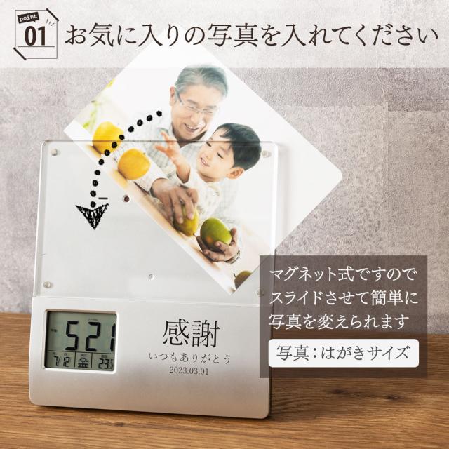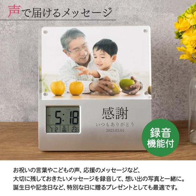 フォトフレーム 写真立て デジタル 時計 付き クロック 録音機能 フォト スタンド 卓上 名入れ 名前入り 名前 ネーム 名入り 名入れ無料 名前入れ 名入れギフト 記念 記念品 還暦祝い 退職祝い 卒業 卒業記念品 周年記念 卒団記念 定年 送別会