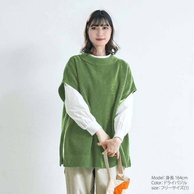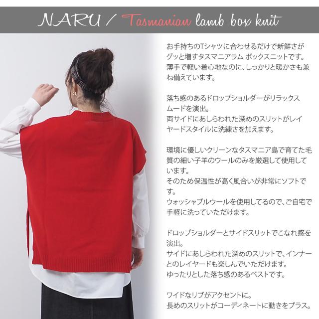 ベスト ナル NARU タスマニアラム ボックスニット ベスト ( 646611 ) 暖かい レディース ジレ チョッキ トップス ドロップショルダー 重ね着 コットン 日本製 セーター カットソー クルーネック 南出メリヤス P/O おしゃれ アーベン 普段使い 実用的
