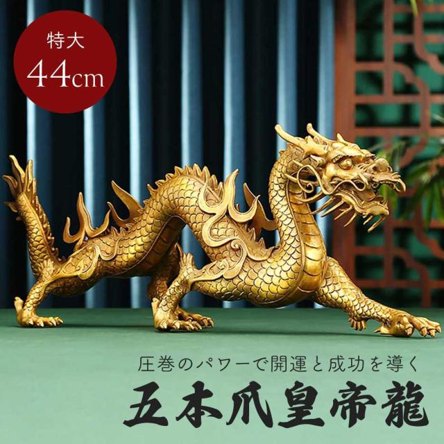 【予約商品納期約1ヶ月】風水 特大 威嚇 龍 置物 五本爪 ゴールド ドラゴン 真鍮 ブロンズゴールド 五本爪龍 皇帝龍 龍の置物 アイテム プレゼント 贈り物 インテリア オブジェ 金 金龍 ブロンズ 神様 龍神様 縁起物 開運 金運 財産運 出世運 幸福 成功