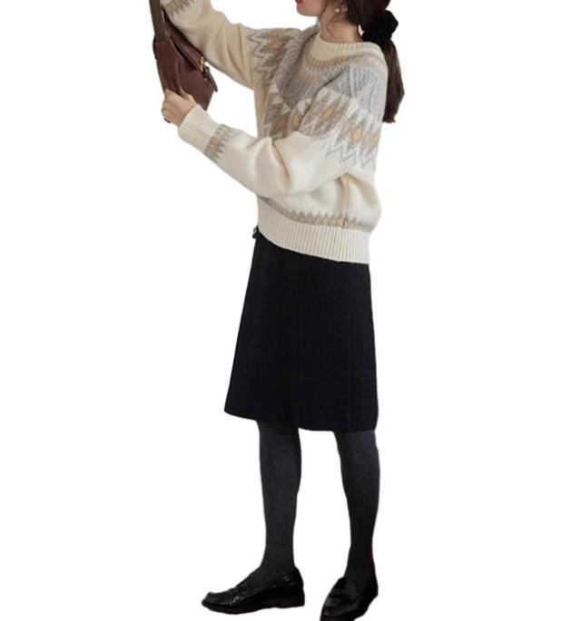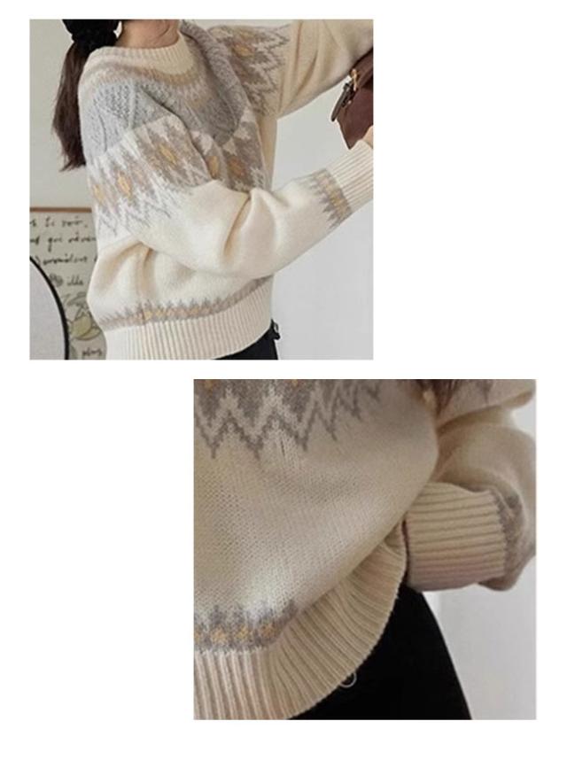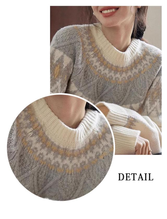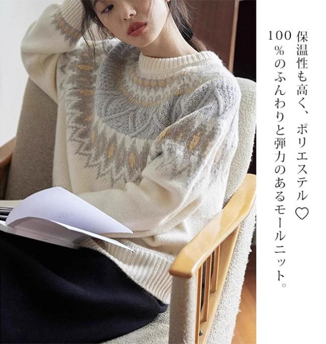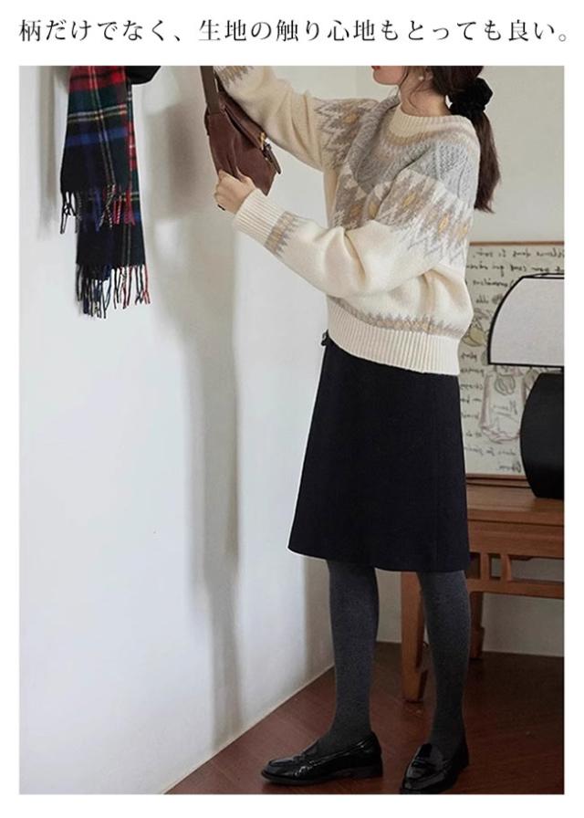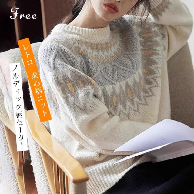 新作 セーター レディース ノルディック柄 求心柄 ニット セーター 長袖 クルーネック ニット トップス プルオーバー あったかい